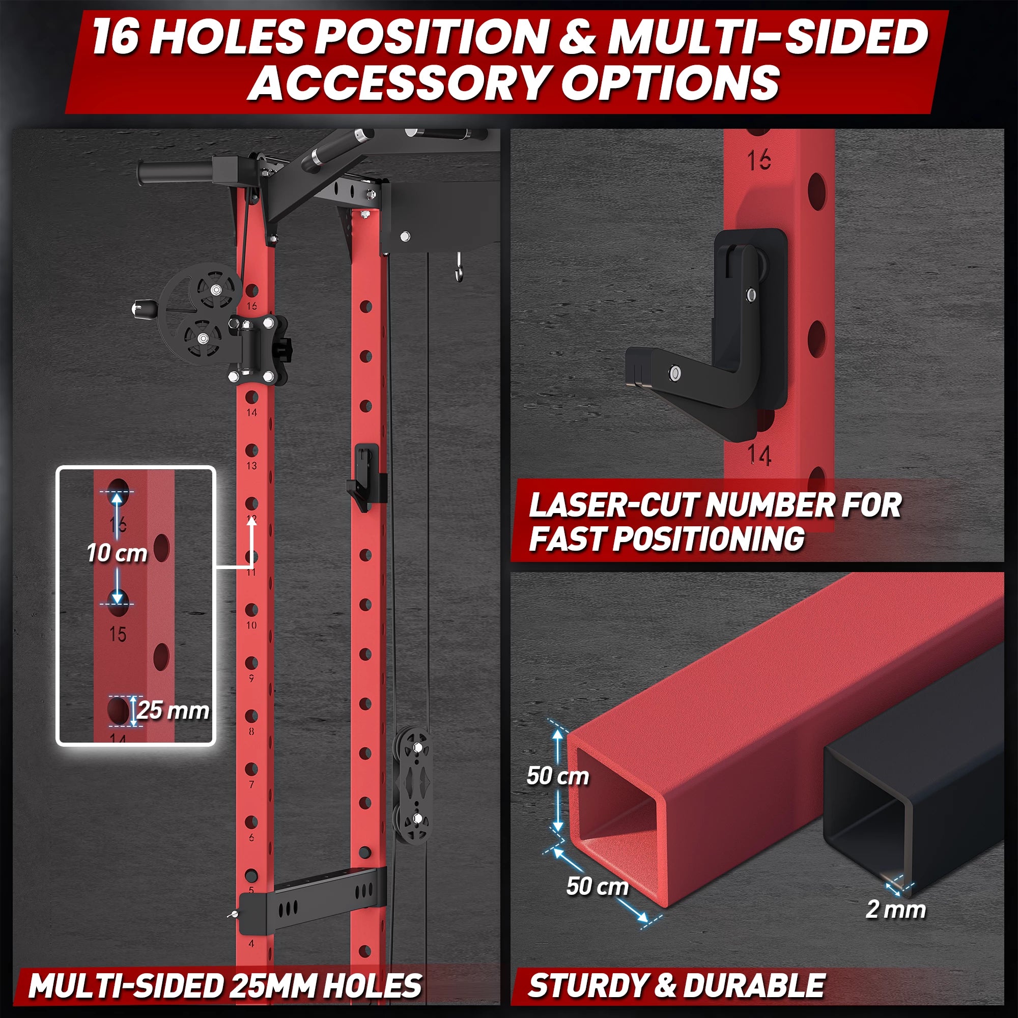 Built from 50x50mm 14-gauge steel, the RitKeep Destroyer M10 combines the strength of a squat rack with the versatility of a multi-station trainer. Supporting up to 680 KG, it’s designed for serious lifters who want maximum performance in a compact footprint.