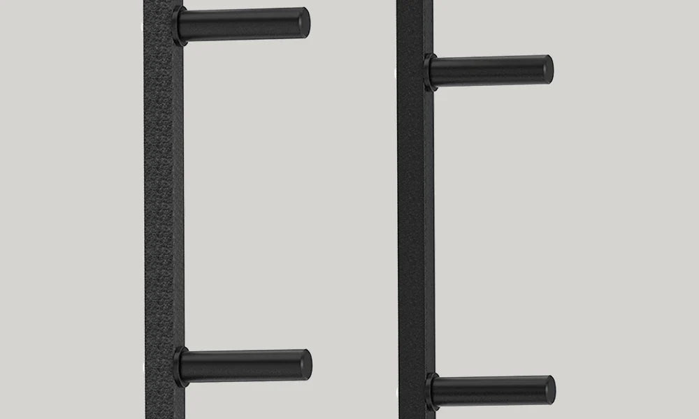 - J-Hooks: Provide safe and convenient storage of the barbell during training. Enables positioning at different heights to perform a variety of strength exercises.